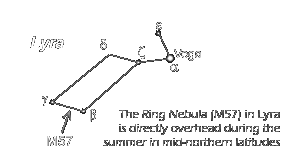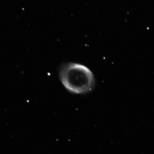 ![]() Messier object 57, the Ring Nebula, is in the constellation Lyra, high in the northern hemisphere sky during July and August. Look straight up for Vega, the fifth-brightest star in the sky, and near it you should find a parallelogram, or crooked rectangle. M57 lies between Beta and Gamma Lyrae, the corners farthest from Vega. The field of view in 10 x 50 binoculars is about 6 degrees. The image is magnified by a factor of 10, and the objective lenses (the ones on the front) are 50 mm in diameter. In the dark, the pupils of your eyes open to a width of about 7 mm, so the 10 x 50s have about 50 times the light-gathering area. The binoculars easily reveal that Epsilon Lyrae is more than one star. But as we center the view between Beta and Gamma, where M57 lies, we still can't see the ring. It's too faint to be seen without a telescope. On a dark night, looking through an 8-inch f/6 reflector, we can finally see a small ring. Using a 20mm Plössl eyepiece, the field of view is about half a degree, the size of the full moon, and the image is magnified by a factor of 60. The 8-inch mirror gathers 800 times as much light as the unaided eye. We could use an eyepiece with a shorter focal length to increase the magnification. This darkens the image and sometimes enhances the contrast. But it also magnifies minor imperfections in the telescope, any unsteadiness in its mount, and the interference of the atmosphere. During a visit to the Vega-Bray Observatory in southern Arizona, I was able to learn about CCD imaging using their computer guided 20-inch f/10 Maksutov Cassegrain telescope. The larger aperture brightens the image and allows higher magnification. You can see the central star, which is a million times fainter than Vega. The Hubble Space Telescope uses a 94-inch f/24 primary mirror. M57 doesn't quite fit in the L shaped 2.5 arcminute field of the Wide Field / Planetary Camera 2, so this image required two separate telescope pointings. Orbiting at an altitude of 600 km, HST is free of the blurring effects of the atmosphere, but cosmic ray streaks must be subtracted from the CCD images, a problem not encountered on the ground. |