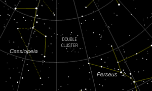 is a large W not far from Polaris and the Big Dipper. The Milky Way runs right through it. The nearby Double Cluster (NGC 869/