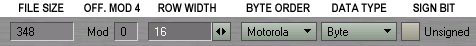 The data window is divided into three columns. The offset column, on the left, numbers the bytes. The first byte in the file is byte 0 (or, speaking technically, the byte at offset 0 from the start of the file), the second row starts with byte 16, and so on. The file contents are displayed in the center column. The column on the right displays the same data, interpreted as printable characters, which makes it easy to see text embedded in the file. A row of controls just above the data window tells you about the display and lets you change what it shows.
