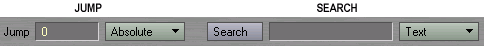 Navigation You can move around in the file using the cursor keys. The left and right arrow keys shift by a single byte, and the up and down arrow keys shift the data a row at a time. You can also use the Page Up, Page Down, Home and End keys. To jump to specific byte offsets, type a number in the Jump edit field and press Enter. You can choose whether the jump is absolute (the * key), or relative to the current position forward (+) or backward (-). To repeat the jump, press j. To search for a specific sequence of bytes, type the sequence in the Search edit field and click the Search button or press Enter. BinView always searches forward from the current byte offset. To repeat a search, press s. BinView can interpret what you type as text (t), a mixture of text and hexadecimal byte values (h), or as the current data type of the display (c). If the search string is text, BinView looks for the literal characters in the string. For searches of the current data type, BinView parses the search string, converting it into the byte sequence that would be used to represent the values. In Text + Hex mode, the search string can contain both byte values, written as two-digit hex numbers separated by spaces, and printable characters, each preceeded by a forward slash (/).