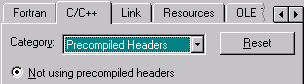 Like a lot of compilers, MSVC gives you the option of precompiling the headers, and it does this by default. The headers for a project tend not to change as often as the C sources, so in theory this can save a small amount of time, especially when you're including the Win32 headers and compiling on a slow machine. But the .pch files MSVC creates can be surprisingly large, over a megabyte for the Win32 headers, and these are created redundantly for each project. And they don't really save that much time. So I always turn this option off. I also turn off incremental linking, mostly for similar reasons, but also to avoid the small chance that it will introduce errors by failing to rebuild code affected by changes elsewhere in the project.