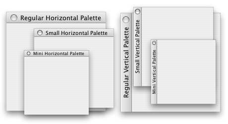 Floating palettes work best, when the font size of the JRootPane is set to 11 or to 9. Font size 11 results in a small sized title bar. This is useful if you want to display a title in the title bar. Font size 9 is useful, if no title shall be displayed. Instead of setting the font size, you can set the client property JComponent.sizeVariant.