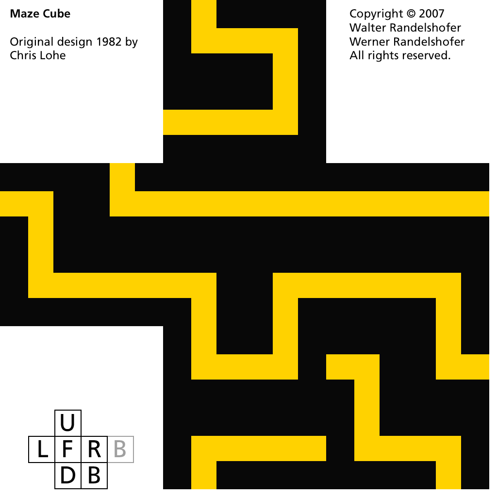 The Maze Cube design by Chris Lohe features a single closed path drawn over the six faces of the cube.