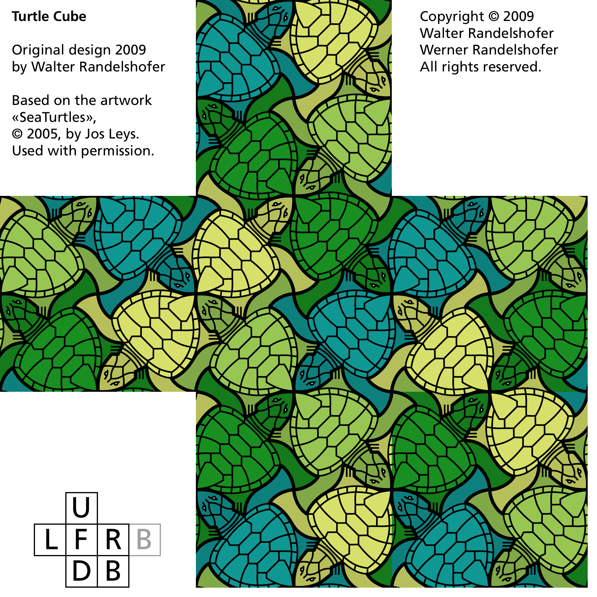 The layout of the Turtle Cube is based on artwork by Jos Leys and was created in 2009 by Walter Randelshofer. The original artwork is used with permission.